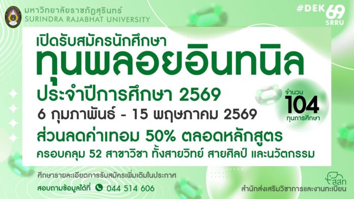 #ทุนพลอยอินทนิล #มรภสุรินทร์ #SRRU #เรียนฟรี #ทุนการศึกษา2569 #ทีมสุรินทร์ #DEKSRRU69💜💚