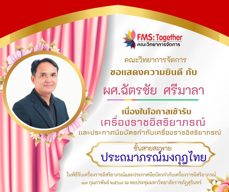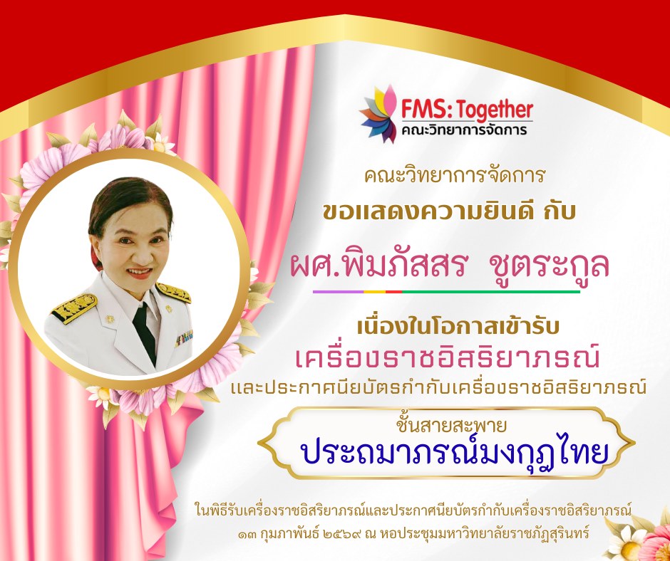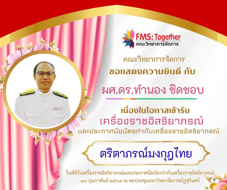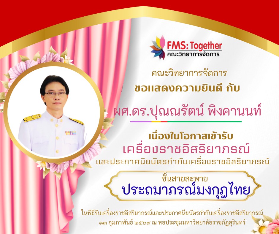 ขอแสดงความยินดี กับ คณาจารย์ และบุคลากร เนื่องในโอกาสเข้ารับเครื่องราชอิสริยาภรณ์และประกาศนียบัตรกำกับเครื่องราชอิสริยาภรณ์