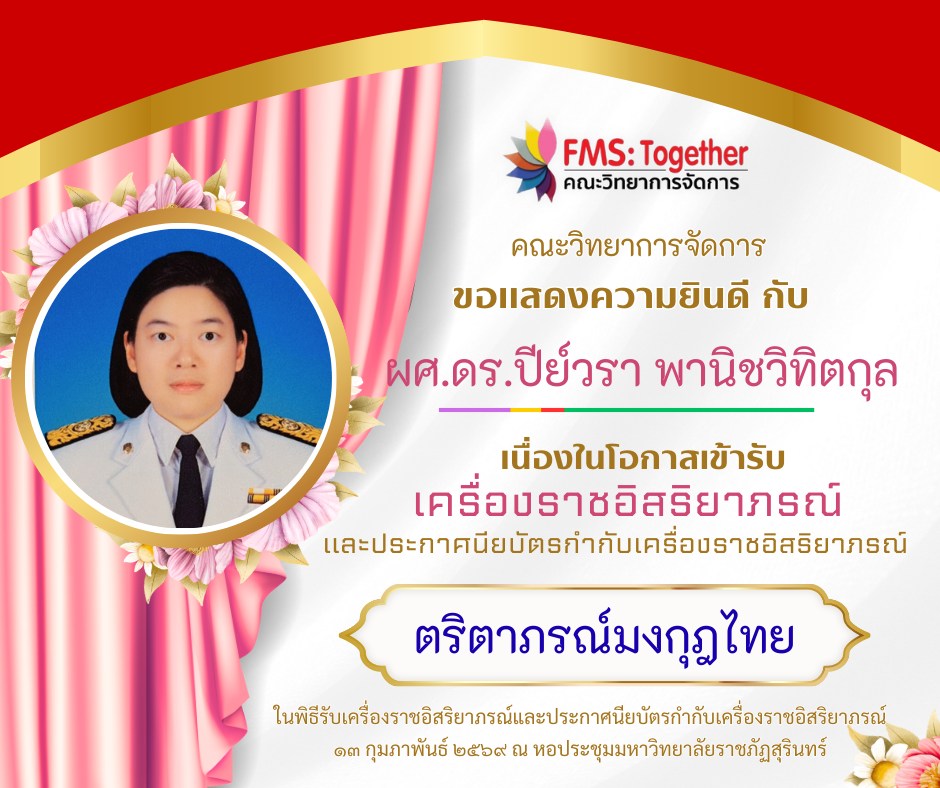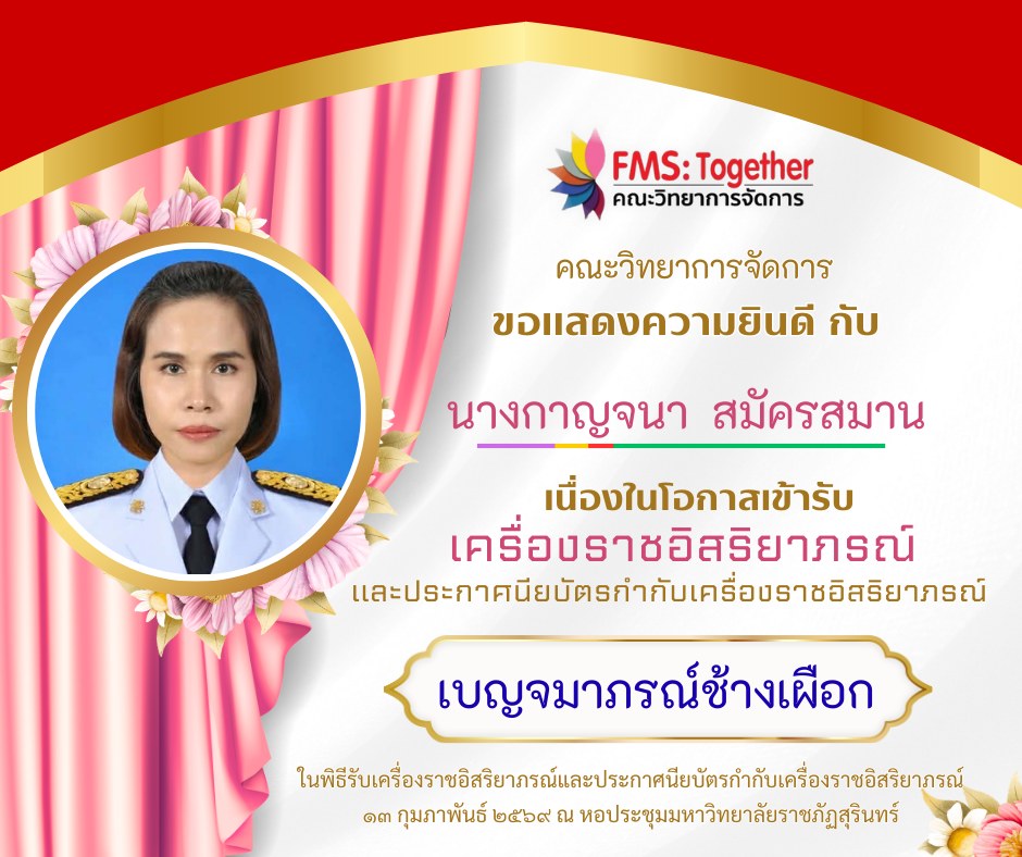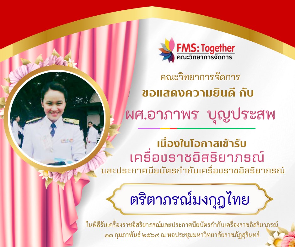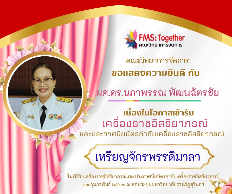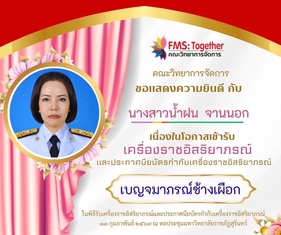 ขอแสดงความยินดี กับ คณาจารย์ และบุคลากร เนื่องในโอกาสเข้ารับเครื่องราชอิสริยาภรณ์และประกาศนียบัตรกำกับเครื่องราชอิสริยาภรณ์