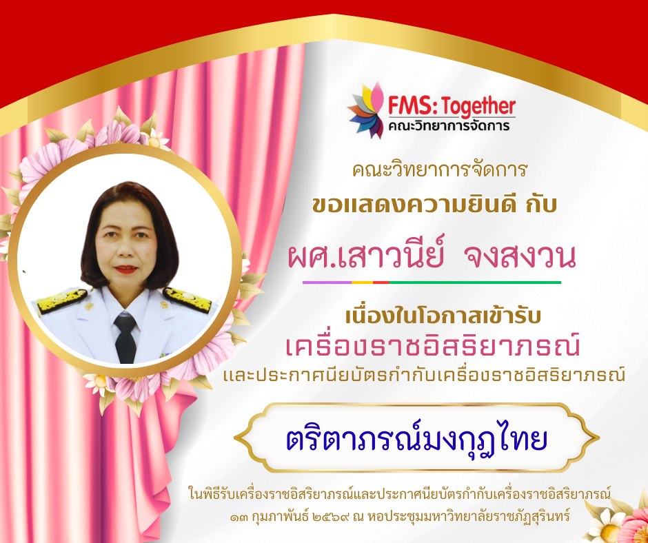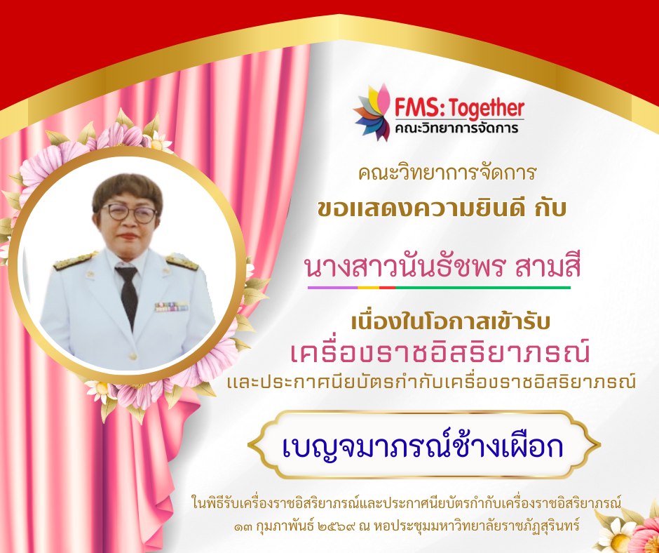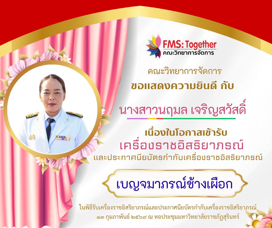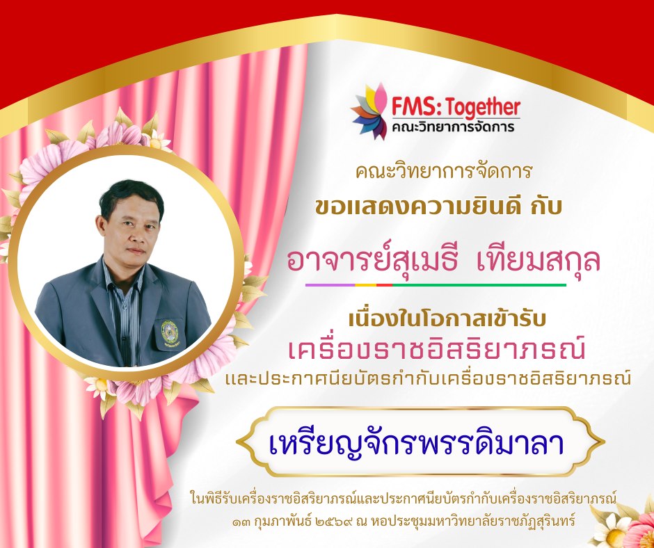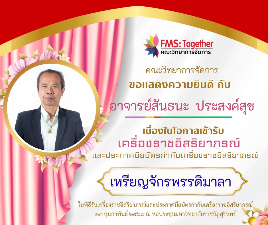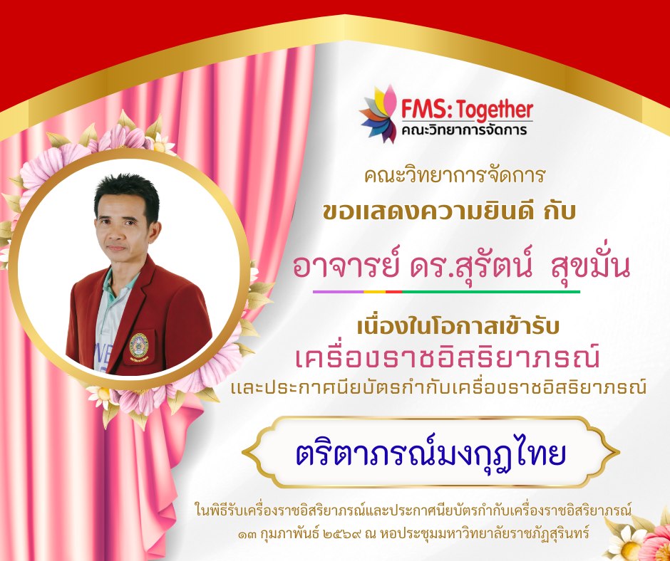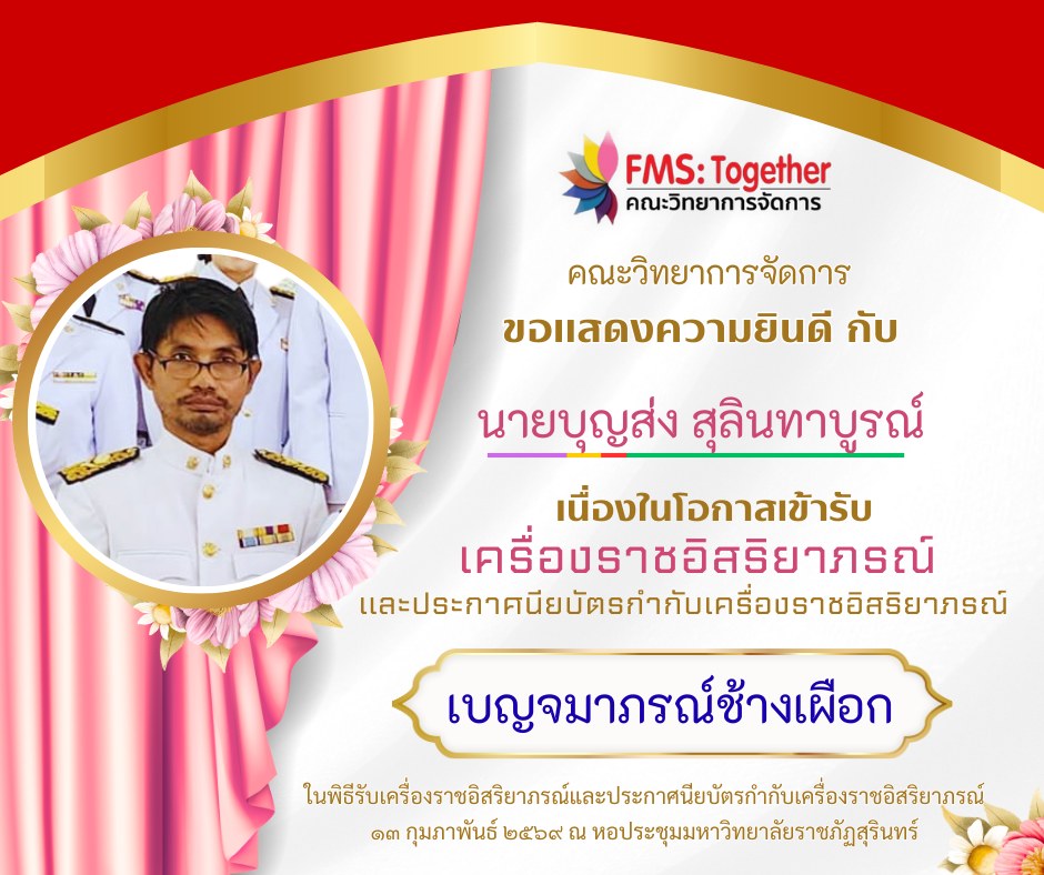ขอแสดงความยินดี 💐 กับ คณาจารย์ และบุคลากร เนื่องในโอกาสเข้ารับเครื่องราชอิสริยาภรณ์และประกาศนียบัตรกำกับเครื่องราชอิสริยาภรณ์ ในพิธีรับเครื่องราชอิสริยาภรณ์และประกาศนียบัตรกำกับเครื่องราชอิสริยาภรณ์วันที่ 13 กุมภาพันธ์ 2569 ณ หอประชุมมหาวิทยาลัยราชภัฏสุรินทร์ ดังรายนามต่อไปนี้