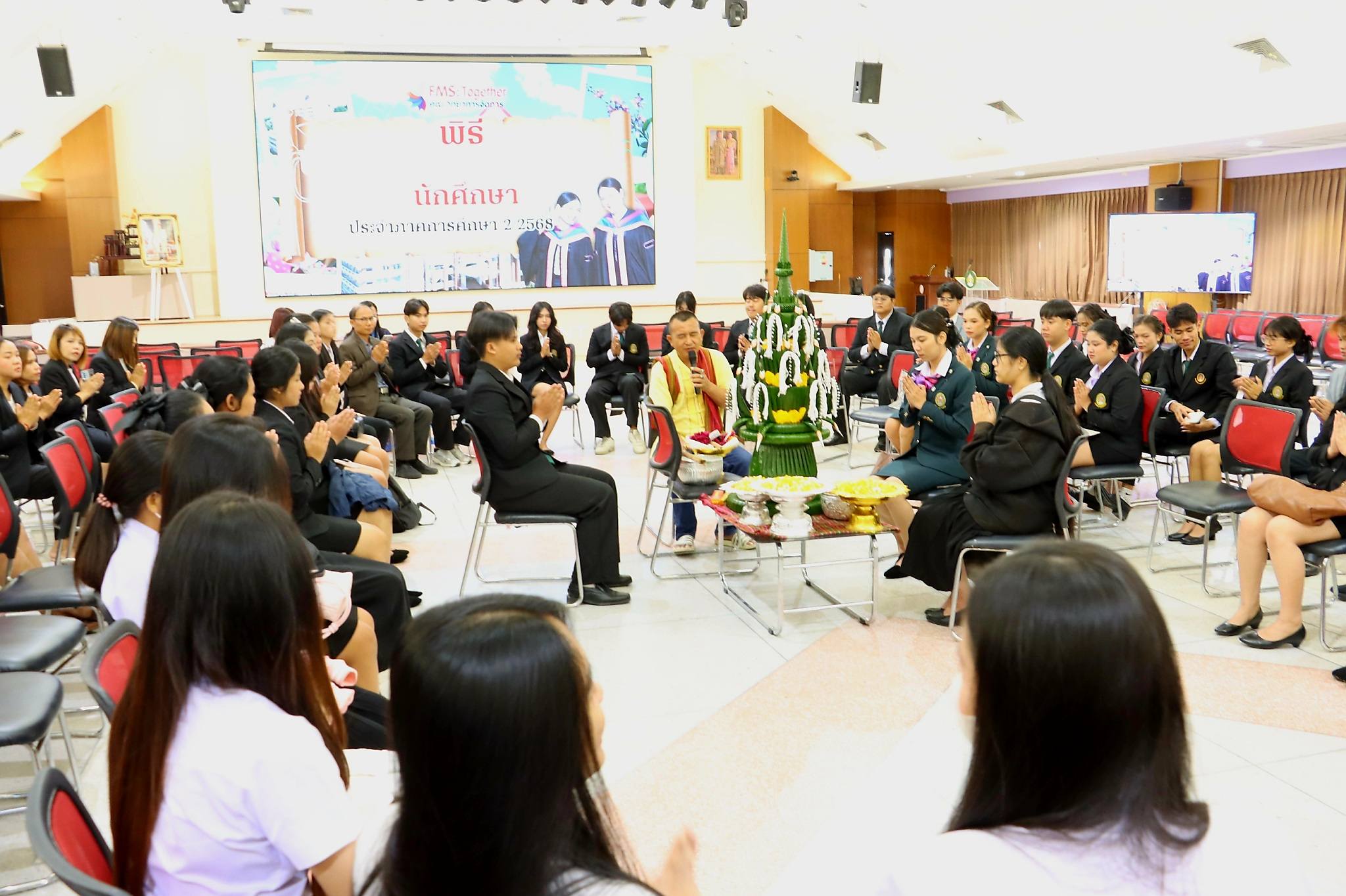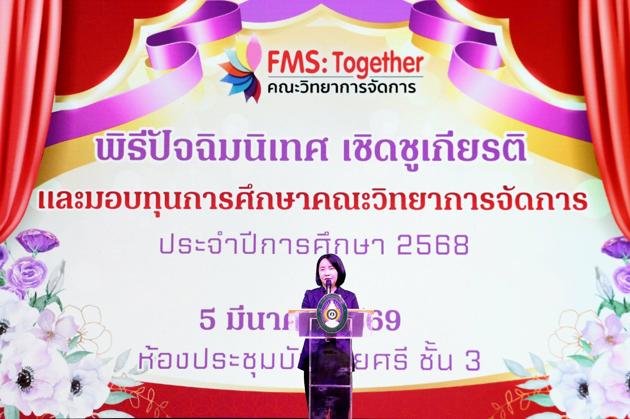 วันที่ 5 มีนาคม 2569 : เวลา 09.00 น. ณ ห้องประชุมบันทายศรี รองศาสตราจารย์ ดร.ชนม์ณัฐชา กังวานศุภพันธ์ คณบดีคณะวิทยาการจัดการ ให้เกียรติเป็นประธานเปิดโครงการปัจฉิมนิเทศ เชิดชูเกียรติ และมอบทุนการศึกษาคณะวิทยาการจัดการ ประจำปีการศึกษา 2568 ซึ่งกิจกรรมดังกล่าวจัดขึ้นเพื่อแนะแนวทางการประกอบอาชีพ ทักษะการทำงาน ตลอดจนการปรับทัศนคติเชิงบวกเพื่อเข้าสู่สังคมการทำงาน ให้แก่นักศึกษาคณะวิทยาการจัดการที่จะสำเร็จการศึกษาในปีการศึกษา 2568