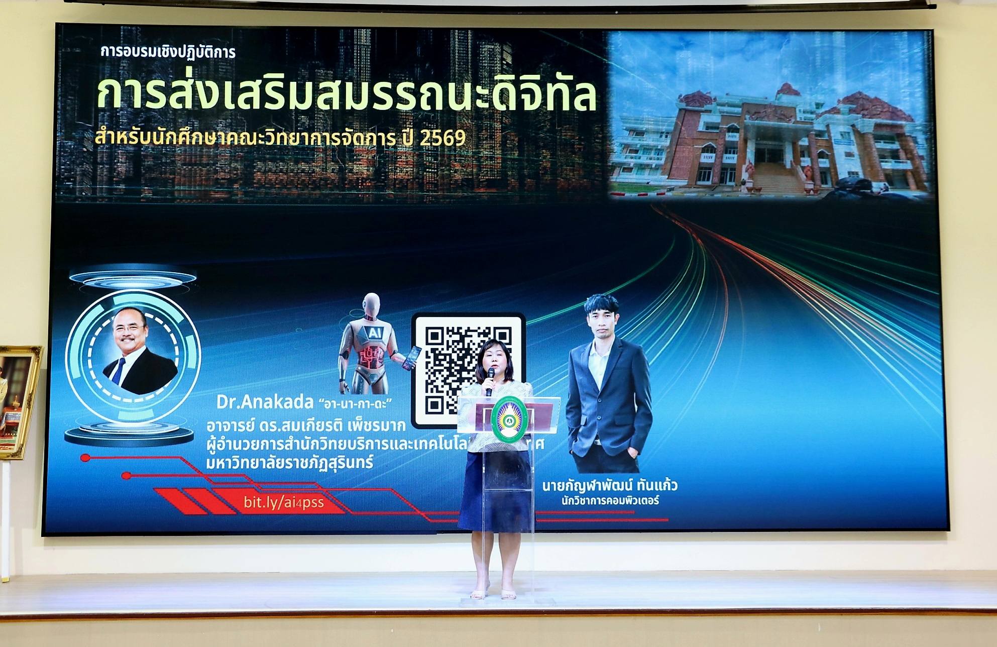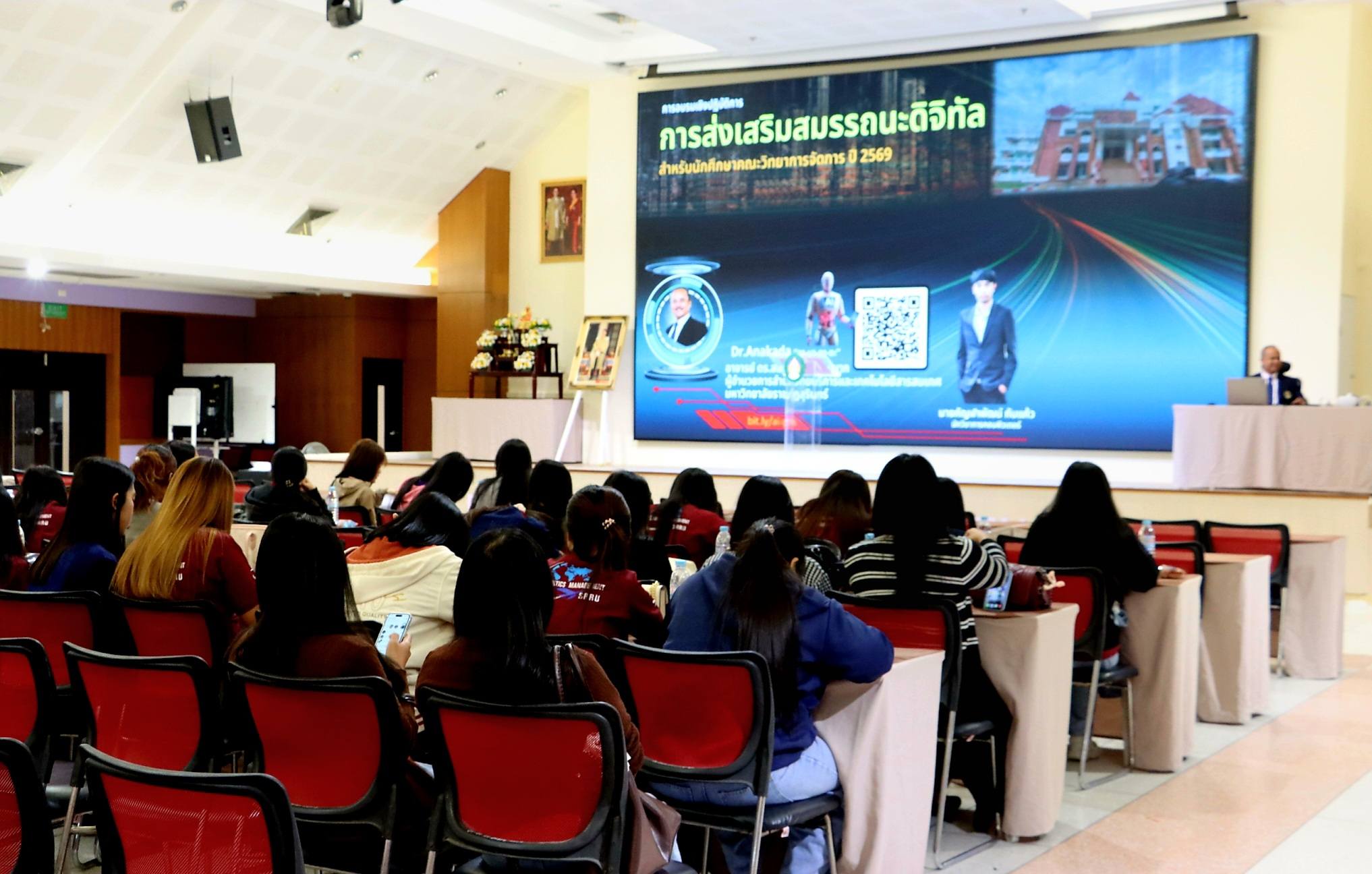 ( 16 มีนาคม 2569) ณ ห้องประชุมบันทายศรี : อาจารย์รัชดา ธนูศิลป์ รองคณบดีฝ่ายพัฒนาองค์กร ให้เกียรติเป็นประธานเปิดโครงการส่งเสริมสมรรถะดิจิทัล ให้แก่นักศึกษาชั้นปีที่ 3 จัดโดย ฝ่ายวิชาการ คณะวิทยาการจัดการ ในการเตรียมความพร้อมในการสอบวัดระดับสมรรถนะดิจิทัล สำหรับนักศึกษาระดับปริญญาตรี หลักสูตร 4 ปี รหัส 66 (รวมถึงนักศึกษา ที่ยังไม่ผ่านการสอบและสอบไม่ผ่าน) โดยมีกำหนดสอบวัดระดับในวันที่ 18 มีนาคม 2569 นี้ ผ่านช่องทางการสอบ Online https://e-testing.srru.ac.th/