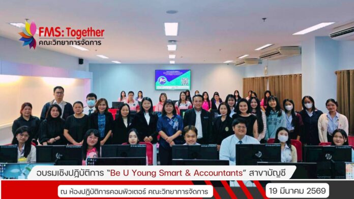(19 มีนาคม 2569) เวลา 09.00 น. ณ ห้องปฏิบัติการคอมพิวเตอร์ ชั้น 4 คณะวิทยาการจัดการ อาจารย์รัชดา ธนูศิลป์ รองคณบดีฝ่ายพัฒนาองค์กร รักษาราชการแทน คณบดีคณะวิทยาการจัดการ เป็นประธานเปิดโครงการอบรมเชิงปฏิบัติการ Be U Young Smart & Accountants ภายใต้แนวคิด “มาเป็นนักบัญชีคุณภาพยุคใหม่กันเถอะ” จัดโดย หลักสูตรบัญชีบัณฑิต คณะวิทยาการจัดการ ระหว่าง วันที่ 19 – 20 มีนาคม พ.ศ. 2569